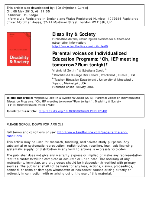 Pdf Parental Voices On Individualized Education Programs Oh Iep Meeting Tomorrow Rum Tonight Svjetlana Curcic Academia Edu